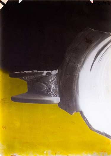 Everything that had been painted over in red or yellow, or covered with cardboard or other materials to “cut out” the subject, would remain white in the final print, thereby removing all the information that, in the original shot, surrounded the object.