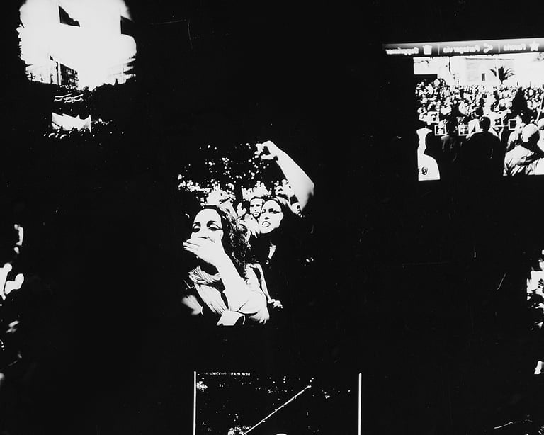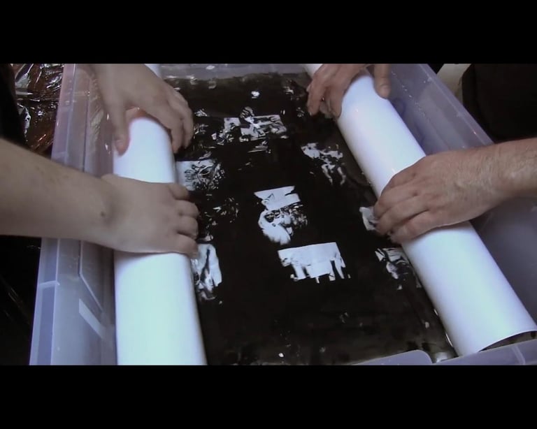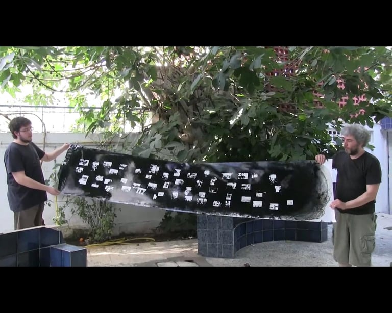 Through social media we organized an event in Tunis, setting up a darkroom. All the participants have been invited to place their mobile phones, with their own pictures showing on the screens, on a self-made projector’s glass. During the event we printed these images on a light sensitive photographic paper using the light emitted from the screens.